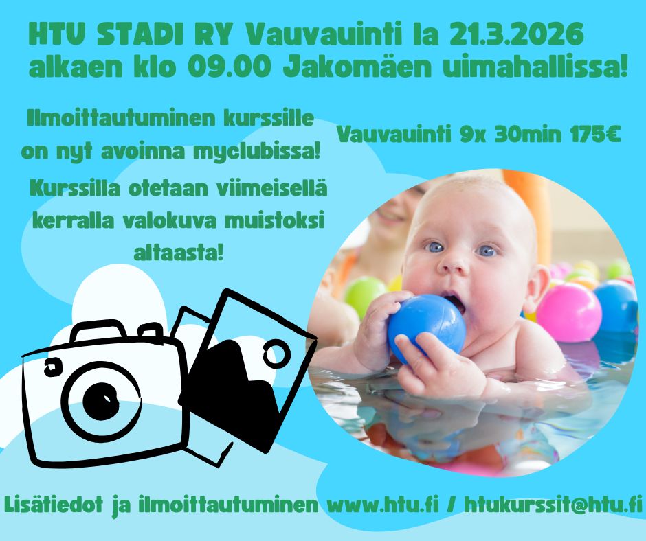 Vauva- ja taaperouintia tarjolla kevään toisessa jaksossa, kurssit jo myynnissä! Kevään toisessa kurssjaksossa taas tarjolla vauva- ja taaperouintia. Jakomäen uimahalli,vain seuran käytössä aamuisin oleva halli ja lämmittety allas, tarjoaa nuoremmille lapsille mukavan rauhallisen ympäristön. Vauvauinnin tarkoituksena on totuttaa lapsi veteen ja tehdä lapsesta veden ystävä. Vauvauinti on koko perheen yhteinen leikkihetki puhtaassa ja lämpimässä (+32c) […]
